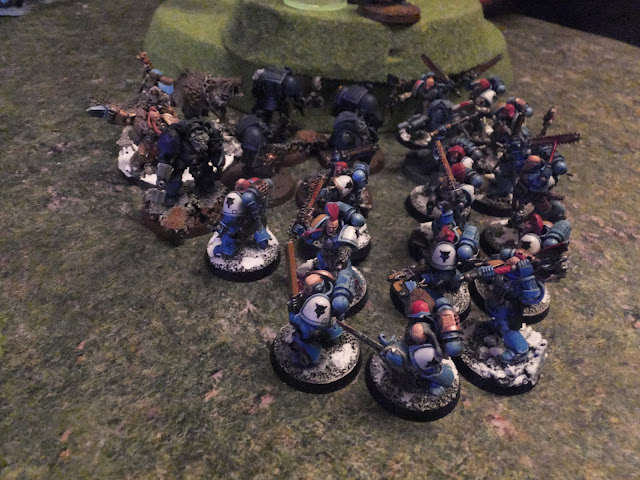 Штурмовой отряд Ультрамаринов бросились в контратаку, пытаясь остановить атаку волков.